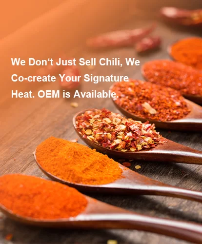 הוקמה בשנת 1996, Longyao County Xuri Food Co., Ltd. עומדת כמתקן מוביל לעיבוד עמוק המתמחה במוצרי צ'ילי. עם חווה ייעודית משלנו, אנו מתמקדים בייצור אבקת צ'ילי איכותית, צ'ילי כתוש, צ'ילי חתוך, צ'ילי שלם, גוצ'וגארו, פפריקה מתוקה, חטיף צ'ילי, שמן זרעי צ'ילי וכו'. המחויבות שלנו היא לספק פתרונות לחובבי תבלינים, חברות מזון, מפיצים המציעים מוצרי פרימיום. ב-Xuri Food, אנו גאים ביכולת שלנו לתת מענה לצרכים שלך ולהעניק את התבלין שמייחד את המנות שלך.